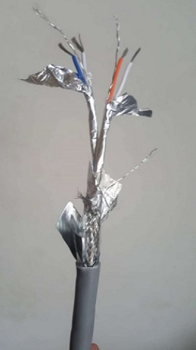 2線對4芯(2x 2x24AWG)(2*2*0.2)(2*2*0.5)(2*2*0.75)(2*2*1.0)(2*2*1.5)多股絞合鍍錫銅絲,PE絕緣護(hù)套;為適用于復(fù)雜的工業(yè)噪聲環(huán)境,特采用鋁箔/聚酯復(fù)合帶100%屏蔽率+鍍錫銅編制網(wǎng)90%屏蔽率共雙重屏蔽,并附有獨(dú)立TC接地導(dǎo)體,工業(yè)灰色PVC外護(hù)套,特性阻抗120歐姆 。